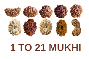 The 1 Mukhi Rudraksha enhances focus and spiritual growth. The 2 Mukhi improves relationships and emotional balance. The 3 Mukhi burns past karmas and boosts confidence. The 4 Mukhi enhances intelligence and communication. The 5 Mukhi aids meditation and heart health. The 6 Mukhi increases willpower and emotional control. The 7 Mukhi attracts wealth and removes financial obstacles. The 8 Mukhi clears hurdles and strengthens the nervous system. The 9 Mukhi grants courage and protection. The 10 Mukhi provides peace and shields from negativity. The 11 Mukhi boosts strength and stamina. The 12 Mukhi enhances confidence and leadership. The 13 Mukhi attracts charm and success. The 14 Mukhi sharpens intuition and foresight. The 15 Mukhi stabilizes emotions and removes karmic blocks. The 16 Mukhi grants courage and legal protection. The 17 Mukhi attracts immense wealth. The 18 Mukhi brings stability and financial growth. The 19 Mukhi enhances knowledge and success. The 20 Mukhi grants intelligence and spiritual power. The 21 Mukhi attracts luxury, wealth, and overall success.